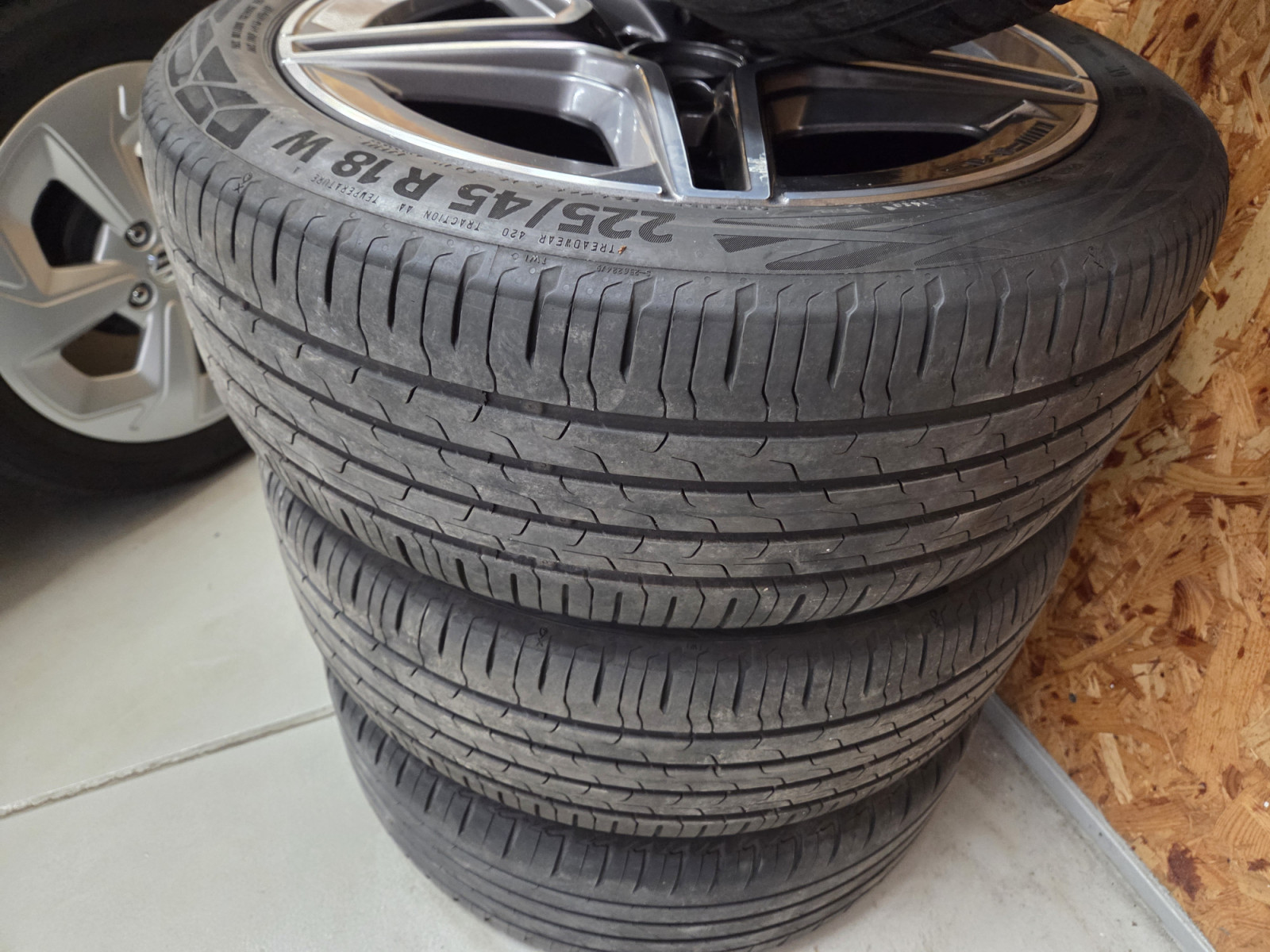 Donc 2x pneus Bridgestone Turanza T005 225/45R18 95Y DOT2922 4MM profil restant et 2x pneus continental ecocontact6 DOT2022 4.5MM profil restant.