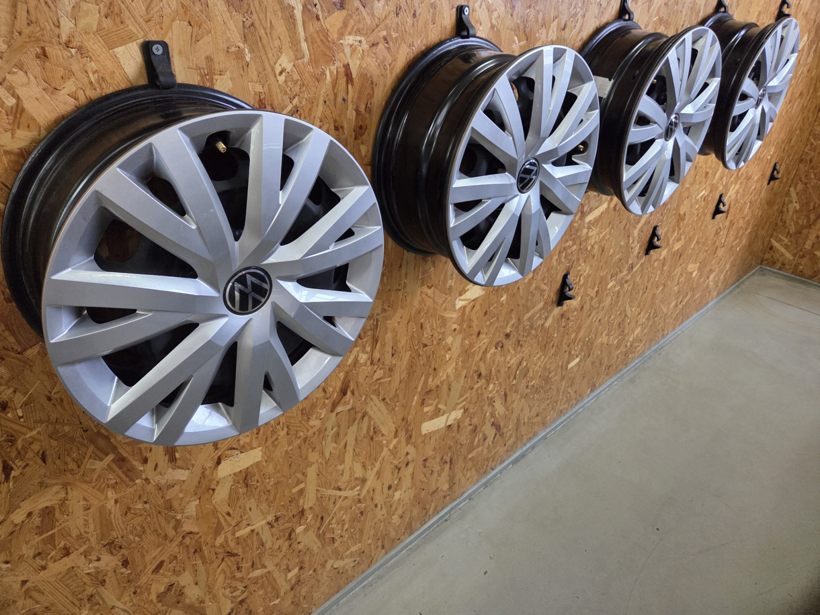 4x jantes tôle 6.5Jx16 ET46 5x112 référence originale vw 5Q0601027BQ avec 4 enjoliveurs.
